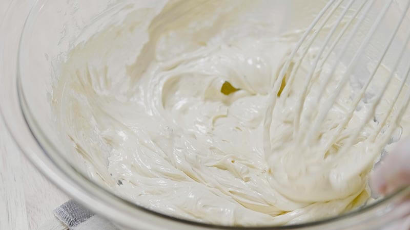 6、白っぽくなり、少しふんわりするまで、しっかり混ぜます。