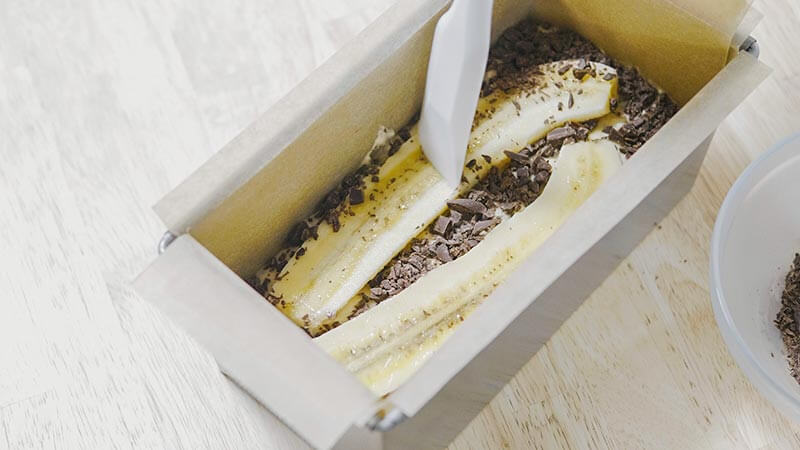 バナナとチョコの鉄板の組み合わせでつくるパウンドケーキは、混ぜて焼くだけなのに抜群の味に仕上がります。