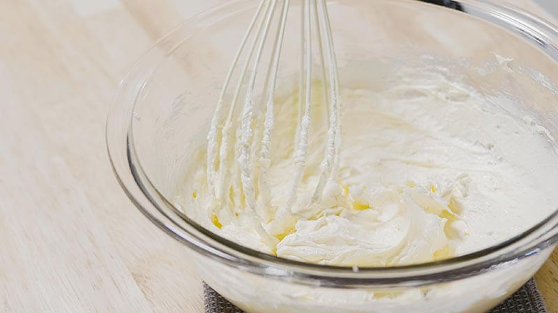 6、その都度、ホイッパーでしっかり混ぜ合わせていきます。